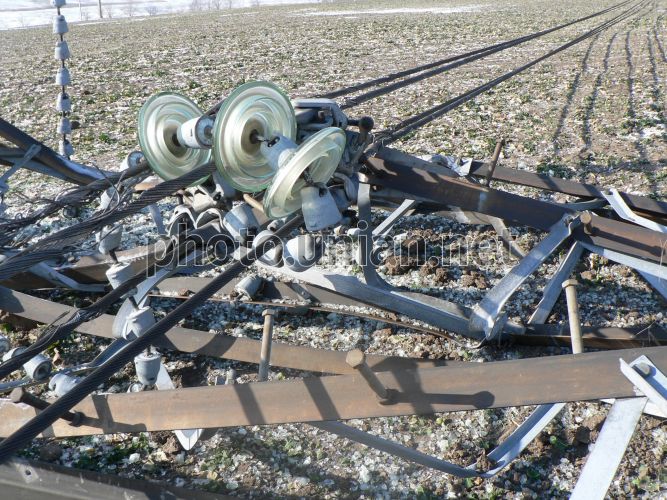 Разобранная опора магистральной линии ВП-750 кВ «ЗАЭС-Южнодонбасская» в районе с. Качкаровка (Великобелозерский район, Запорожская область), 27 января 2012 г. Сотрудники правоохранительных органов задержали троих мужчин, которые 27 января в Великобелозерском районе Запорожской области в районе села Качкаровка разобрали металлическую конструкцию электроопоры. Тогда в ходе проверки было установлено, что на опоре № 77 (а также на двух соседних) частично отсутствуют металлические уголки и степ-болты, из-за чего опора упала на землю, что привело к короткому замыканию электросети и снижению мощности атомной станции на 40 МВт. Никто не пострадал, на общее состояние электроснабжения это не повлияло, перебоя в подаче электричества к пользователям не было. Для расследования этого преступления правоохранители создали усиленную следственно-оперативную группу, которая оперативно установила личности подозреваемых в совершении преступления: троих местных жителей 1986, 1987 и 1978 года рождения. В отношении задержанных следственным управлением ГУМВД Украины в Запорожской области возбуждено уголовное дело по признакам преступления, предусмотренного ч.2 ст. 194 -1 УК Украины «Умышленное повреждение объектов электроэнергетики». Фото предоставлено главным инженером Национальной энергетической компании «Укрэнерго» Днепровской энергетической системы «Запорожские магистральные сети» Василием Федорончаком / УНИАН