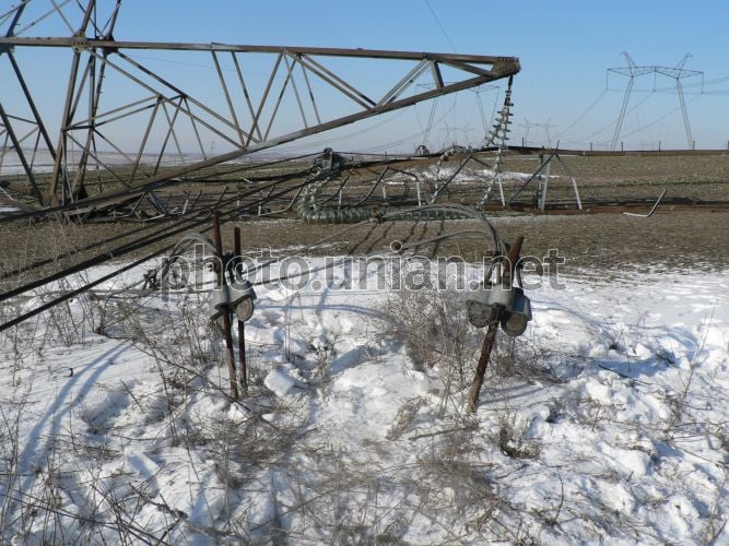Упавшая опора магистральной линии ВП-750 кВ «ЗАЭС-Южнодонбасская» в районе с. Качкаровка (Великобелозерский район, Запорожская область), 27 января 2012 г. Сотрудники правоохранительных органов задержали троих мужчин, которые 27 января в Великобелозерском районе Запорожской области в районе села Качкаровка разобрали металлическую конструкцию электроопоры. Тогда в ходе проверки было установлено, что на опоре № 77 (а также на двух соседних) частично отсутствуют металлические уголки и степ-болты, из-за чего опора упала на землю, что привело к короткому замыканию электросети и снижению мощности атомной станции на 40 МВт. Никто не пострадал, на общее состояние электроснабжения это не повлияло, перебоя в подаче электричества к пользователям не было. Для расследования этого преступления правоохранители создали усиленную следственно-оперативную группу, которая оперативно установила личности подозреваемых в совершении преступления: троих местных жителей 1986, 1987 и 1978 года рождения. В отношении задержанных следственным управлением ГУМВД Украины в Запорожской области возбуждено уголовное дело по признакам преступления, предусмотренного ч.2 ст. 194 -1 УК Украины «Умышленное повреждение объектов электроэнергетики». Фото предоставлено главным инженером Национальной энергетической компании «Укрэнерго» Днепровской энергетической системы «Запорожские магистральные сети» Василием Федорончаком / УНИАН