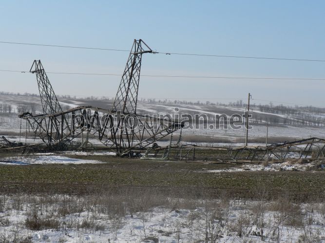 Упавшая опора магистральной линии ВП-750 кВ «ЗАЭС-Южнодонбасская» в районе с. Качкаровка (Великобелозерский район, Запорожская область), 27 января 2012 г. Сотрудники правоохранительных органов задержали троих мужчин, которые 27 января в Великобелозерском районе Запорожской области в районе села Качкаровка разобрали металлическую конструкцию электроопоры. Тогда в ходе проверки было установлено, что на опоре № 77 (а также на двух соседних) частично отсутствуют металлические уголки и степ-болты, из-за чего опора упала на землю, что привело к короткому замыканию электросети и снижению мощности атомной станции на 40 МВт. Никто не пострадал, на общее состояние электроснабжения это не повлияло, перебоя в подаче электричества к пользователям не было. Для расследования этого преступления правоохранители создали усиленную следственно-оперативную группу, которая оперативно установила личности подозреваемых в совершении преступления: троих местных жителей 1986, 1987 и 1978 года рождения. В отношении задержанных следственным управлением ГУМВД Украины в Запорожской области возбуждено уголовное дело по признакам преступления, предусмотренного ч.2 ст. 194 -1 УК Украины «Умышленное повреждение объектов электроэнергетики». Фото предоставлено главным инженером Национальной энергетической компании «Укрэнерго» Днепровской энергетической системы «Запорожские магистральные сети» Василием Федорончаком / УНИАН