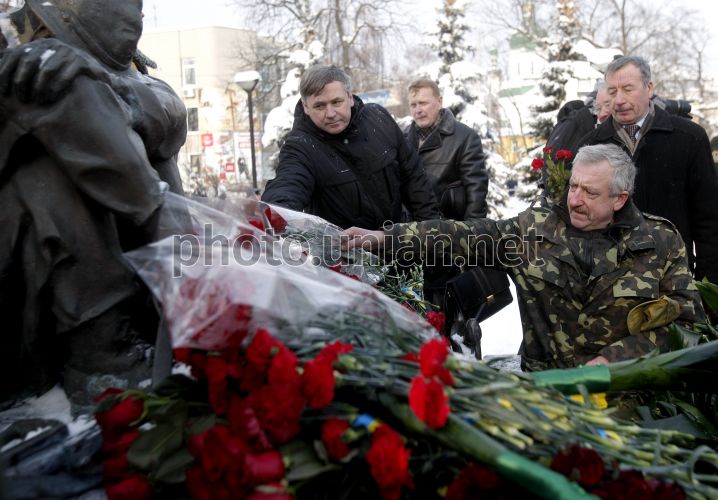 Участники церемонии возложения цветов к Мемориальному комплексу погибшим в Афганистане гражданам Украины по случаю Дня чествования памяти участников боевых действий на территории других государств и 23-й годовщины вывода войск бывшего СССР из Республики Афганистан, в Киеве, в среду, 15 февраля 2012 г. 15 февраля, согласно Указу Президента Украины, в Украине отмечают День чествования участников боевых действий на территории других государств. В этот день в 1989 году последнее подразделение 40-й армии СССР покинуло Афганистан. В войне в Афганистане принимали участие почти 170 тысяч украинцев. По официальным данным, погибли 13 тыс. 100 лиц, но, по словам «афганцев», их намного больше: ведь в первые годы войны запрещали даже на надгробиях писать, что человек погиб во время выполнения интернационального долга. Фото УНИАН