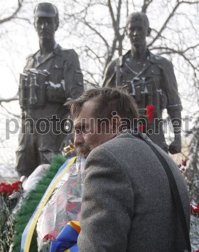 Воин-интернационалист во время возложения цветов к Мемориальному комплексу погибшим в Афганистане гражданам Украины по случаю Дня чествования памяти участников боевых действий на территории других государств и 23-й годовщины вывода войск бывшего СССР из Республики Афганистан, в Киеве, в среду, 15 февраля 2012 г. 15 февраля, согласно Указу Президента Украины, в Украине отмечают День чествования участников боевых действий на территории других государств. В этот день в 1989 году последнее подразделение 40-й армии СССР покинуло Афганистан. В войне в Афганистане принимали участие почти 170 тысяч украинцев. По официальным данным, погибли 13 тыс. 100 лиц. Фото УНИАН
