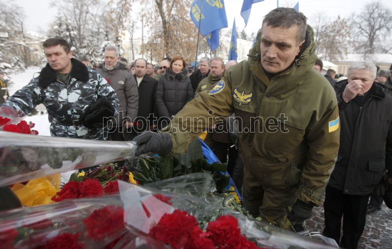 Воин-интернационалист во время возложения цветов к Мемориальному комплексу погибшим в Афганистане гражданам Украины по случаю Дня чествования памяти участников боевых действий на территории других государств и 23-й годовщины вывода войск бывшего СССР из Республики Афганистан, в Киеве, в среду, 15 февраля 2012 г. 15 февраля, согласно Указу Президента Украины, в Украине отмечают День чествования участников боевых действий на территории других государств. В этот день в 1989 году последнее подразделение 40-й армии СССР покинуло Афганистан. В войне в Афганистане принимали участие почти 170 тысяч украинцев. По официальным данным, погибли 13 тыс. 100 лиц. Фото УНИАН