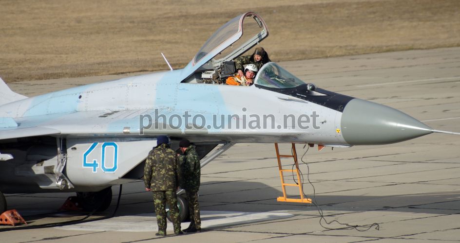 Лётчик Севастопольской бригады тактической авиации Воздушных Сил Вооруженных Сил Украины готовится к тренировочному полету, в Севастополе (Крым), в пятницу, 16 марта 2012 г. В рамках подготовки к Евро 2012 в Севастопольской бригаде тактической авиации прошли тренировочные полеты. Фото Василия Батанова / УНИАН