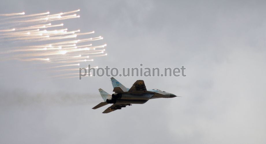 Самолет в небе во время тренировочных полетов Севастопольской бригады тактической авиации Воздушных Сил Вооруженных Сил Украины, в Севастополе (Крым), в пятницу, 16 марта 2012 г. В рамках подготовки к Евро 2012 в Севастопольской бригаде тактической авиации прошли тренировочные полеты. Фото Василия Батанова / УНИАН