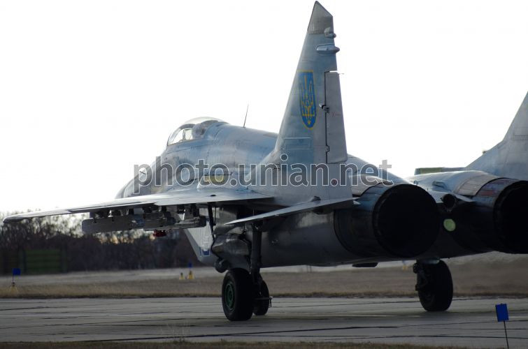 Самолет готовится ко взлёту во время тренировочных полетов Севастопольской бригады тактической авиации Воздушных Сил Вооруженных Сил Украины, в Севастополе (Крым), в пятницу, 16 марта 2012 г. В рамках подготовки к Евро 2012 в Севастопольской бригаде тактической авиации прошли тренировочные полеты. Фото Василия Батанова / УНИАН