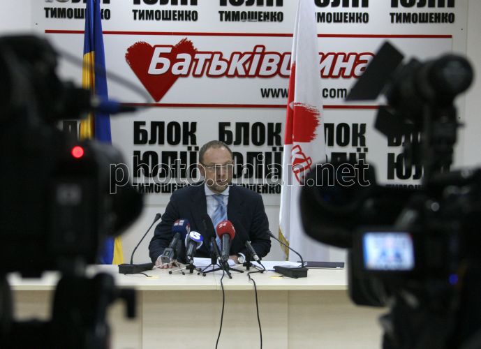 Адвокат экс-премьер-министра Украины Юлии Тимошенко, народный депутат Сергей Власенко во время брифинга, в Киеве, в среду, 21 марта 2012 г. Защитник экс-премьера заявляет, что независимая графологическая экспертиза установила, что подпись Ю.Тимошенко на директивах на проведение газовых переговоров была факсимильной. По его словам, 5 марта была проведена независимая экспертиза подписи экс-премьера на газовых директивах. Как сказал Власенко, экспертиза установила, что на оригинале директив подпись от имени Ю.Тимошенко является не рукописной, а представляет собой факсимиле. По его словам, имея такое заключение, суд кассационной инстанции «не имеет иной возможности, как отменить все позорные приговоры». С.Власенко добавил, что приговор Печерского райсуда Киева базировался исключительно на том, что Ю. Тимошенко поставила свою подпись на директивах на проведение газовых переговоров. Фото Александра Прокопенко / POOL / УНИАН