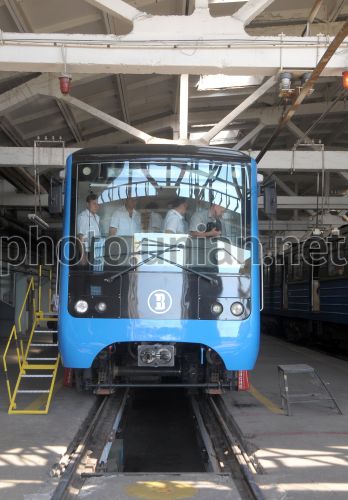 Новый поезд метро Крюковского вагоностроительного завода стоит в Московском депо города Харькова во вторник, 26 июня 2012 г. В этот день Харьковским метрополитеном был представлен новый поезд метро производства Крюковского вагонного завода. Фото Владимира Андреева /УНИАН
