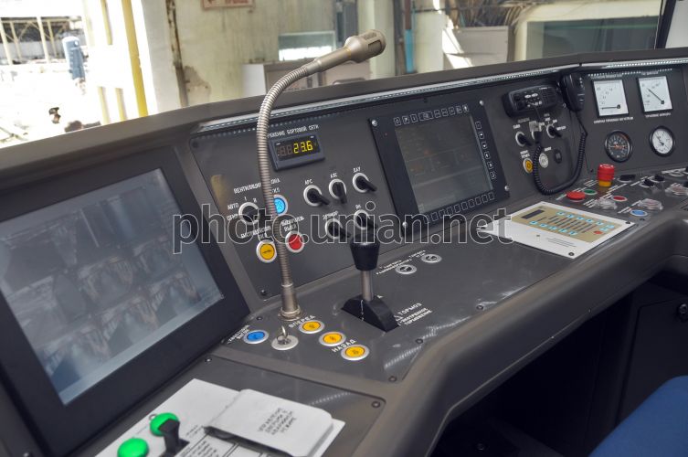 Кабина машиниста нового поезда метро Крюковского вагоностроительного завода стоящего в Московском депо города Харькова во вторник, 26 июня 2012 г. В этот день Харьковским метрополитеном был представлен новый поезд метро производства Крюковского вагонного завода. Фото Владимира Андреева /УНИАН