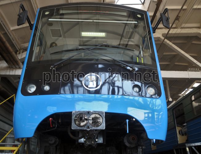 Новый поезд метро Крюковского вагоностроительного завода стоит в Московском депо города Харькова во вторник, 26 июня 2012 г. В этот день Харьковским метрополитеном был представлен новый поезд метро производства Крюковского вагонного завода. Фото Владимира Андреева /УНИАН