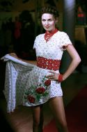 Модель демонстрирует вышиванку во время конкурса «Вышиванка для Мадонны» в Киеве, в пятницу, 13 июля 2012 г. В Киеве выбрали вышиванку для Мадонны. Интернет-голосование определило 12 работ-финалистов. В итоге в конкурсе победила работа модельера Елены Бурениной, ее вышиванка попадет прямо в руки Мадонны. Концерт Мадонны в Киеве состоится 4 августа на столичном НСК «Олимпийский» в рамках ее нового мирового турне Madonna Dance Party Tour в поддержку альбома M.D.N.A. Фото Владимира Гонтара / УНИАН