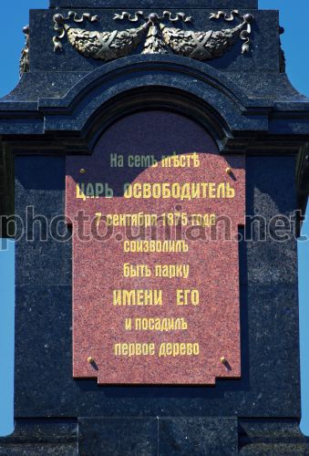 Отреставрированная Александровская колонна, установленная в честь российского императора Александра II, во время церемонии открытия в Одессе, в воскресенье, 2 сентября 2012 г. В центральном парке культуры и отдыха им. Тараса Шевченко в этот день торжественно открыли после реконструкции Александровскую колонну, установленную в 1891 году в честь посещения Одессы российским императором Александром II. Колонна воссоздана в первозданном виде: восстановлены все детали лепки, в том числе и на вершине колонны с двуглавыми орлами, шапка Мономаха, мемориальные доски, а также вензель Александра II из цветов. Фото Александра Гиманова / УНИАН