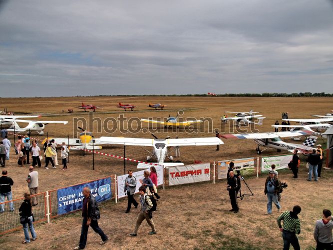 Участники фестиваля возле аэропланов на спортивном аэродроме "Гидропорт" во время «Одесского Фестиваля Малой Авиации 2012» в Одессе, в субботу, 8 сентября 2012 г. В этот день в Одессе прошло авиашоу, на котором можно было увидеть демонстрационные полеты, показательные выступления спортсменов-парашютистов, полеты воздушных шаров, воздушные бои радиоуправляемых авиамоделей, а также демонстрацию современных моделей авиатехники. Участникам II «Одесского Фестиваля Малой Авиации 2012» продемонстрировали уникальный самолет «FARMAN-IV», а также самолет «ANATRA-2», копию самолета времен Первой мировой войны «Анатра-Анасаль». Фото Александра Вельможко / УНИАН