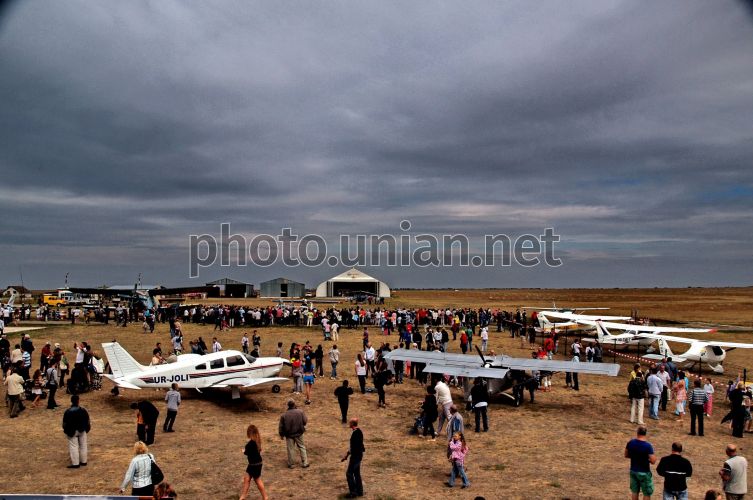 Участники фестиваля возле аэропланов на спортивном аэродроме "Гидропорт" во время «Одесского Фестиваля Малой Авиации 2012» в Одессе, в субботу, 8 сентября 2012 г. В этот день в Одессе прошло авиашоу, на котором можно было увидеть демонстрационные полеты, показательные выступления спортсменов-парашютистов, полеты воздушных шаров, воздушные бои радиоуправляемых авиамоделей, а также демонстрацию современных моделей авиатехники. Участникам II «Одесского Фестиваля Малой Авиации 2012» продемонстрировали уникальный самолет «FARMAN-IV», а также самолет «ANATRA-2», копию самолета времен Первой мировой войны «Анатра-Анасаль». Фото Александра Вельможко / УНИАН