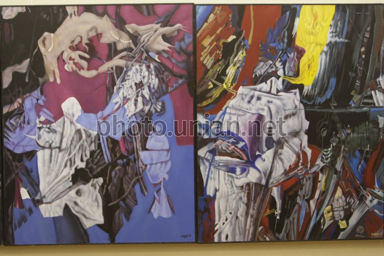 Выставка картин украинского художника Ивана Марчука «Погляд у безмежність» в Киеве, в четверг, 13 сентября 2012 г. Десятый цикл работ украинского художника Ивана Марчука полностью отличается от девяти предыдущих. "Погляд у безмежність" - это мистическая серия, открывающая зрителям другой мир, "пятое измерение" реальности, сообщают организаторы выставки. Уникальный стиль исполнения автор называет абстрактным сюрреализмом. На открытии выставки Иван Марчук лично представлял гостям свои работы. Фото Андрея Скакодуба / УНИАН
