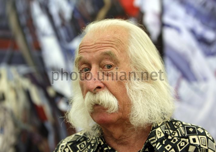 Украинский художник Иван Марчук во время открытия своей выставки «Погляд у безмежність» в Киеве, в четверг, 13 сентября 2012 г. Десятый цикл работ украинского художника Ивана Марчука полностью отличается от девяти предыдущих. "Погляд у безмежність" - это мистическая серия, открывающая зрителям другой мир, "пятое измерение" реальности, сообщают организаторы выставки. Уникальный стиль исполнения автор называет абстрактным сюрреализмом. На открытии выставки Иван Марчук лично представлял гостям свои работы. Фото Андрея Скакодуба / УНИАН