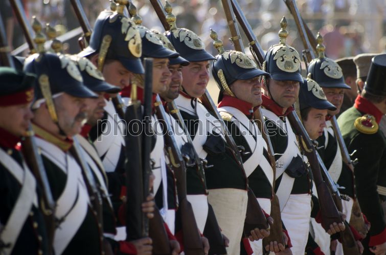 Участники военно-исторической реконструкции, посвященной Альминскому бою, в форме российских солдат, в селе Вилино (Бахчисарайский район, Крым), в субботу, 29 сентября 2012 г. В Военном мемориале «Поле Альминского сражения» 28-30 сентября проходит V Международный военно-исторический фестиваль «Альминское Дело», посвященный 156-й годовщине окончания Восточной (Крымской) войны 1853-56 гг. Альминская битва - это первое крупное сражение Крымской войны. Она состоялась в сентябре 1854 года между войсками коалиции Великобритании, Франции и Турции с одной стороны, и России - с другой. Победу в Альминском сражении одержали войска коалиции. Фото Василия Батанова / УНИАН