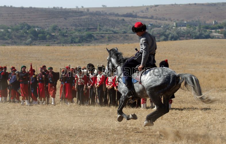 Участники военно-исторической реконструкции, посвященной Альминскому бою, в селе Вилино (Бахчисарайский район, Крым), в субботу, 29 сентября 2012 г. В Военном мемориале «Поле Альминского сражения» 28-30 сентября проходит V Международный военно-исторический фестиваль «Альминское Дело», посвященный 156-й годовщине окончания Восточной (Крымской) войны 1853-56 гг. Альминская битва - это первое крупное сражение Крымской войны. Она состоялась в сентябре 1854 года между войсками коалиции Великобритании, Франции и Турции с одной стороны, и России - с другой. Победу в Альминском сражении одержали войска коалиции. Фото Василия Батанова / УНИАН