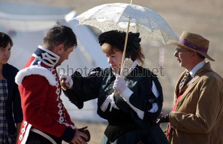 Участники военно-исторической реконструкции, посвященной Альминскому бою, в селе Вилино (Бахчисарайский район, Крым), в субботу, 29 сентября 2012 г. В Военном мемориале «Поле Альминского сражения» 28-30 сентября проходит V Международный военно-исторический фестиваль «Альминское Дело», посвященный 156-й годовщине окончания Восточной (Крымской) войны 1853-56 гг. Альминская битва - это первое крупное сражение Крымской войны. Она состоялась в сентябре 1854 года между войсками коалиции Великобритании, Франции и Турции с одной стороны, и России - с другой. Победу в Альминском сражении одержали войска коалиции. Фото Василия Батанова / УНИАН