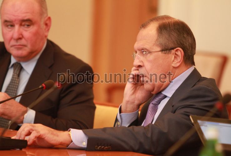 Министр иностранных дел Российской Федерации Сергей Лавров, справа, во время встречи с министром иностранных дел Украины Константином Грищенко в Киеве, в пятницу, 19 октября 2012 г. В этот день министр иностранных дел России Сергей Лавров посетил с рабочим визитом Киев, где встретился с министром иностранных дел Украины Константином Грищенко. Во время переговоров был обсужден весь комплекс двусторонних вопросов. В частности, обсуждалась международная проблематика, ход Приднестровского урегулирования, расширения договорно-правовой базы пребывания ЧФ РФ на территории Украины. Кроме того, министры обсудили реализацию крупных гуманитарных проектов, направленных на укрепление сотрудничества двух стран в культурной, образовательной, научной и других областях. По данным МИД Украины, визит С.Лаврова осуществлен в рамках подготовки встречи президентов Украины и России в Москве 22 октября. Фото Михаила Койфмана / УНИАН