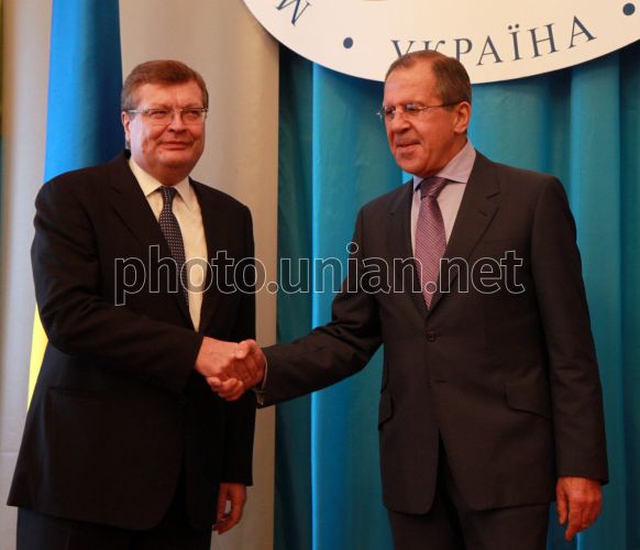 Министр иностранных дел Украины Константин Грищенко, слева, и министр иностранных дел Российской Федерации Сергей Лавров во время встречи в Киеве, в пятницу, 19 октября 2012 г. В этот день министр иностранных дел России Сергей Лавров посетил с рабочим визитом Киев, где встретился с министром иностранных дел Украины Константином Грищенко. Во время переговоров был обсужден весь комплекс двусторонних вопросов. В частности, обсуждалась международная проблематика, ход Приднестровского урегулирования, расширения договорно-правовой базы пребывания ЧФ РФ на территории Украины. Кроме того, министры обсудили реализацию крупных гуманитарных проектов, направленных на укрепление сотрудничества двух стран в культурной, образовательной, научной и других областях. По данным МИД Украины, визит С.Лаврова осуществлен в рамках подготовки встречи президентов Украины и России в Москве 22 октября. Фото Михаила Койфмана / УНИАН