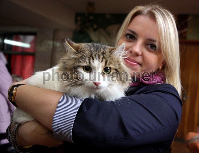 Девушка держит породистую кошку во время выставки-конкурса "Мис-Кис-2012" в Ужгороде, в воскресенье, 25 ноября 2012 г. В этот день в Закарпатском областном дворце детского и юношеского творчества "Падиюн" прошел ежегодный конкурс "Мис-кис", на котором были представлены четыре категории четвероногих: беспородные, юниоры, породистые-короткошерстные, породистые-длинношерстные. Фото Яноша Немеша / УНИАН