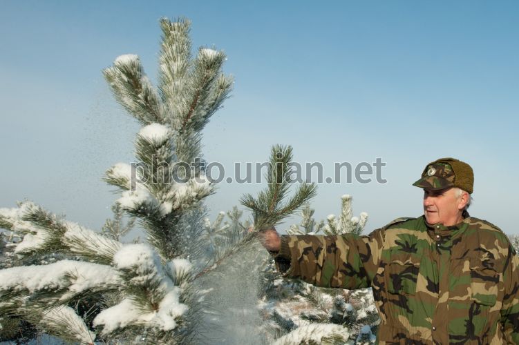 Лесничий на территории Александровского лесничества в Запорожской области, в понедельник, 24 декабря 2012 г. В эти дни в Александровском лесничестве завершается вырубка елок, которые отправятся на елочные базары. В лесничестве выращивают крымскую сосну, которая успешно прижилась на Запорожской земле. Фото Александра Прилепы / УНИАН