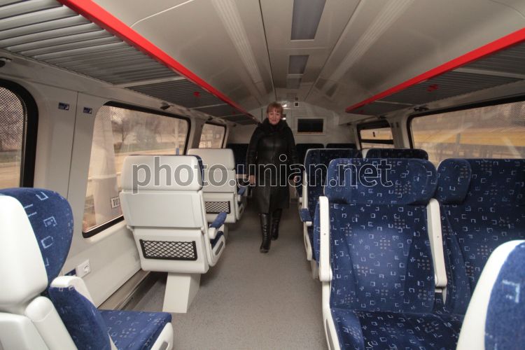 Салон вагона скоростного двухэтажного поезда "Skoda" на железнодорожном вокзале Симферополя (Крым), во вторник, 29 января 2013 г. Фото Алексея Сувирова / УНИАН