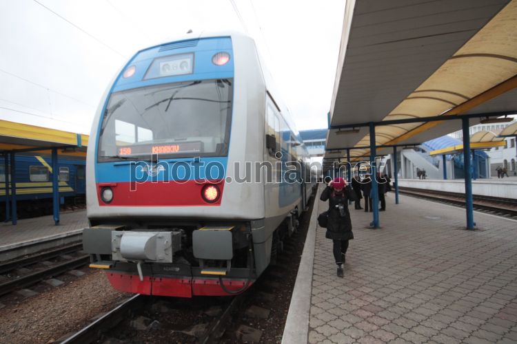 Скоростной двухэтажный поезд "Skoda" на железнодорожном вокзале Симферополя (Крым), во вторник, 29 января 2013 г. Фото Алексея Сувирова / УНИАН