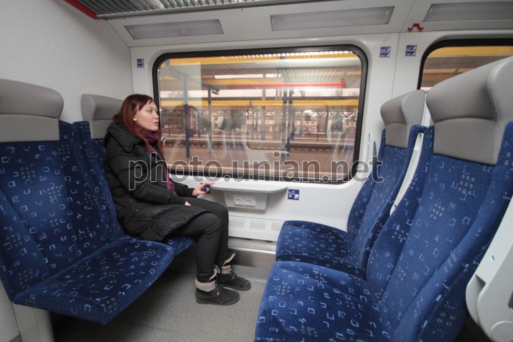 Салон вагона скоростного двухэтажного поезда "Skoda" на железнодорожном вокзале Симферополя (Крым), во вторник, 29 января 2013 г. Фото Алексея Сувирова / УНИАН