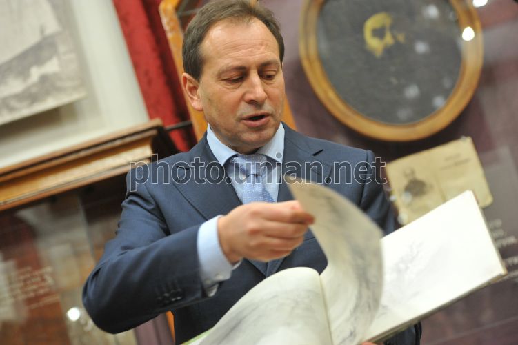Основатель фонда «Родная страна», народный депутат от фракции «Батькивщина» Николай Томенко на презентации «Альбома рисунков Тараса Шевченко 1841-1843 годов» в Черкассах, в пятницу, 1 марта 2013 г. В этот день в черкасском музее «Кобзаря» шевченковед Сергей Гальченко и основатель фонда «Родная страна» и политик Николай Томенко презентовали «Альбом рисунков Тараса Шевченко 1841-1843 годов». Это факсимильное воссоздание первого по хронологии из четырех альбомов рисунков Тараса Шевченко. Здесь собранные зарисовки, эскизы и этюды, выполненные художником в Петербурге, пейзажи Киева, а также наброски в «Живописную Украину» и «Крестьянскую семью», сделанные во время первого путешествия поэта по Украине 1843 года. Большинство рисунков выполнено карандашом, другие - тушью-пером. Фото Вячеслава Ромодана / УНИАН