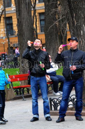 Участники ежегодной акции "День мыльных пузырей" в Одессе, в воскресенье, 7 апреля 2013 г. Фото Александра Шепелева / УНИАН