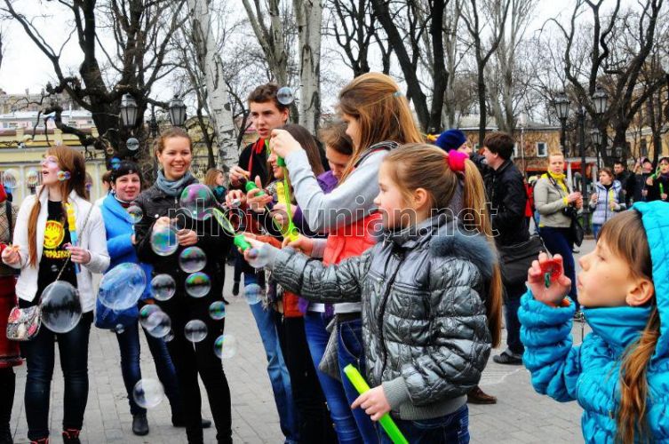 Участники ежегодной акции "День мыльных пузырей" в Одессе, в воскресенье, 7 апреля 2013 г. Фото Александра Шепелева / УНИАН