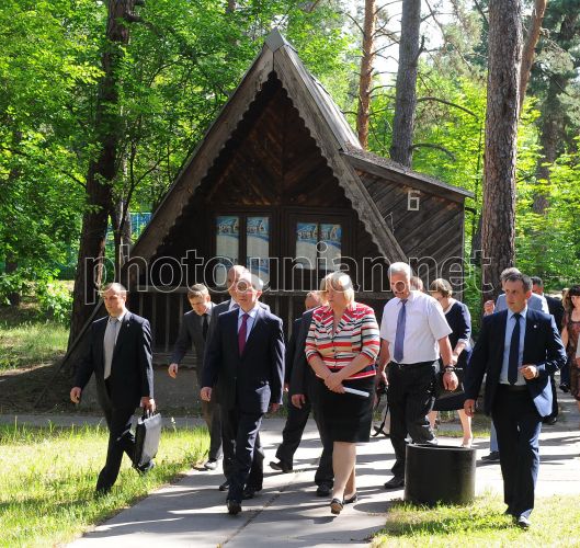Премьер-министр Украины Николай Азаров (в центре) во время посещения детского оздоровительного комплекса "Днепр" (Киевская область), во вторник, 21 мая 2013 г. Премьер-министр Украины Николай Азаров требует от правительства и местных властей планомерно поднимать уровень детского отдыха. Фото Олега Маркевича / пресс-служба КМУ / POOL / УНИАН