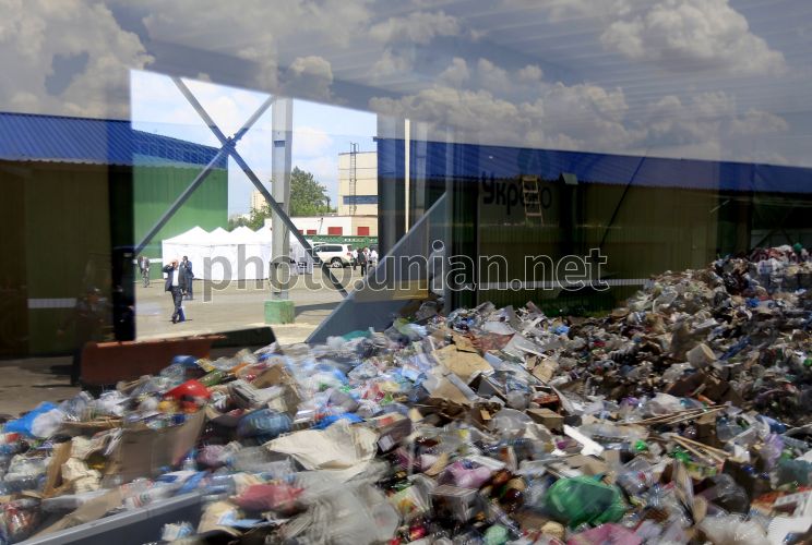 Территория нового производственного комплекса по сортировке отходов ГП "Укрекоресурсы", в Киеве, в четверг, 6 июня 2013 г. Новая сортировочная линия мощностью в 65 тысяч тонн твердых бытовых отходов в год в значительной степени повлияет на возможность полноценной переработки вторичного сырья в Киеве. Фото Евгения Малолетки / УНИАН
