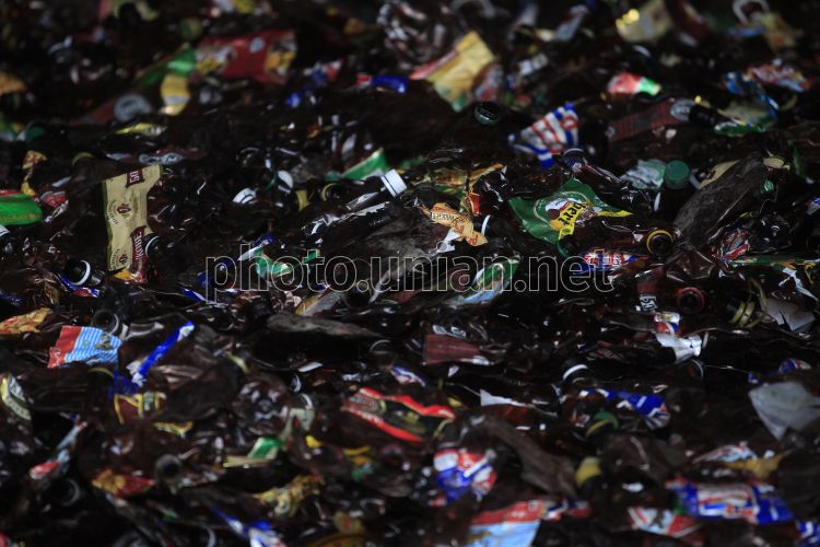 Пластиковые бутылки на территории нового производственного комплекса по сортировке отходов ГП "Укрекоресурсы", в Киеве, в четверг, 6 июня 2013 г. Новая сортировочная линия мощностью в 65 тысяч тонн твердых бытовых отходов в год в значительной степени повлияет на возможность полноценной переработки вторичного сырья в Киеве. Фото Евгения Малолетки / УНИАН