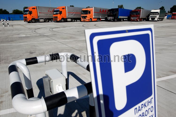 Открытие TIR-паркинга для большегрузного автотранспорта внутреннего и международного назначения на кольцевой дороге Борисполь - Бровары в Киевской области, в четверг, 17 июля 2013 г. В этот день вице-премьер-министр Украины Александр Вилкул открыл TIR-паркинг для большегрузного транспорта. Паркинг рассчитан на стоянку 50 большегрузных автотранспортных средств. Стоянка занимает площадь более 10 тыс. кв. м, а общая площадь всего комплекса 4 га. Фото Владислава Мусиенко / УНИАН