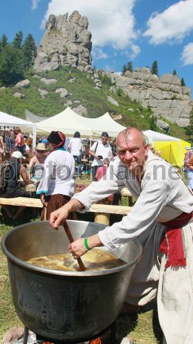 Мужчина готовит блюдо во время фестиваля украинской средневековой культуры "Ту Стань! - 2013" в селе Урич, Сколивского р-на, Львовской обл., в субботу, 3 августа 2013 г. В с. Урич в восьмой раз стартовал фестиваль украинской средневековой культуры "Ту Стань!". Фото УНИАН