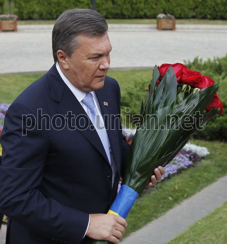 Президент Украины Виктор Янукович во время возложения цветов к памятнику Тарасу Шевченко, в Киеве, в субботу, 24 августа 2013 г. В День Независимости Украины руководство государства возложило цветы к памятникам Тарасу Шевченко и Михаилу Грушевскому. Фото УНИАН