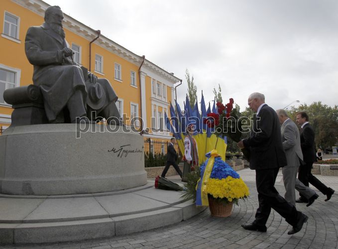 Участники возложения цветов к памятнику Михаилу Грушевскому, в Киеве, в субботу, 24 августа 2013 г. В День Независимости Украины руководство государства возложило цветы к памятникам Тарасу Шевченко и Михаилу Грушевскому. Фото УНИАН
