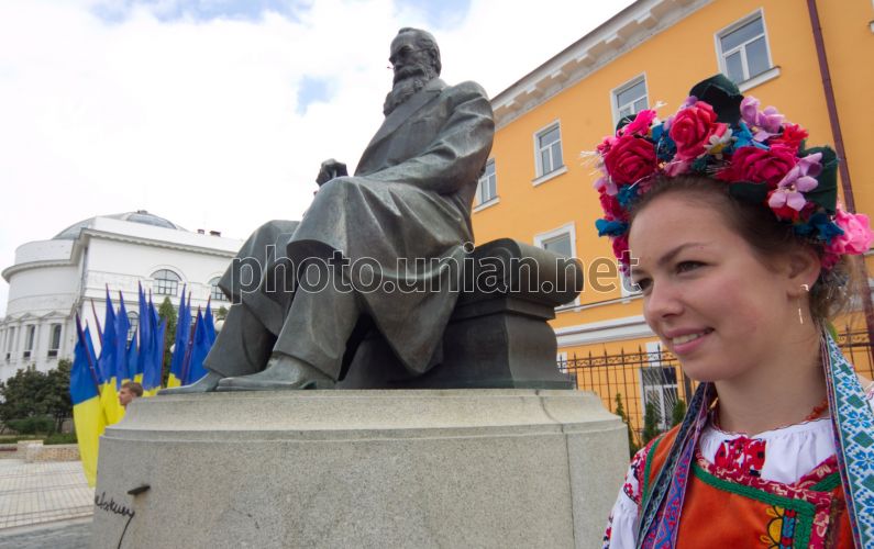 Памятник Михаилу Грушевскому в Киеве, в субботу, 24 августа 2013 г. В День Независимости Украины руководство государства возложило цветы к памятникам Тарасу Шевченко и Михаилу Грушевскому. Фото Михаила Маркива / POOL / УНИАН