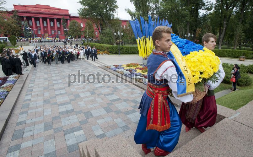 Участники возложения цветов к памятнику Тарасу Шевченко, в Киеве, в субботу, 24 августа 2013 г. В День Независимости Украины руководство государства возложило цветы к памятникам Тарасу Шевченко и Михаилу Грушевскому. Фото Анастасии Сироткиной / POOL / УНИАН