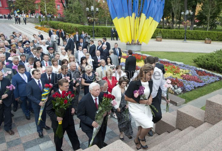 Участники возложения цветов к памятнику Тарасу Шевченко, в Киеве, в субботу, 24 августа 2013 г. В День Независимости Украины руководство государства возложило цветы к памятникам Тарасу Шевченко и Михаилу Грушевскому. Фото Анастасии Сироткиной / POOL / УНИАН