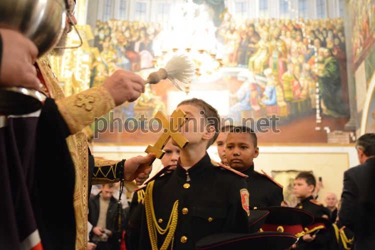 Кадеты во время получения погонов, которые 50 лет назад носили украинские кадеты, в Успенском соборе Киево-Печерской Лавры, в четверг, 7 ноября 2013 г. Передача погонов состоялась в рамках юбилейного 5-го посвящения киевских школьников в кадеты. Фото Владимира Токарца / УНИАН