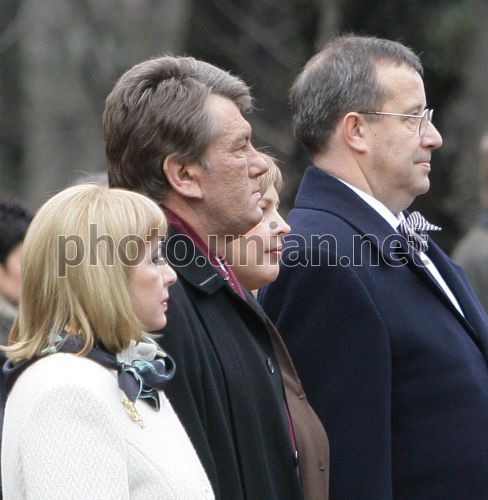 COMM Президент Украины Виктор Ющенко, второй слева, вместе со своей супругой Катериной, слева, и Президент Эстонской Республики Томас-Хендрик Ильвес со своей супругой Эвелин во время официальной церемонии встречи в Президентском дворце в Таллинне (Эстония) во вторник, 12 декабря 2006 г. С 12-го по 13-е декабря Виктор Ющенко и его супруга Катерина находятся с официальным визитом в Эстонской Республике. Фото Николая Лазаренко / POOL / УНИАН