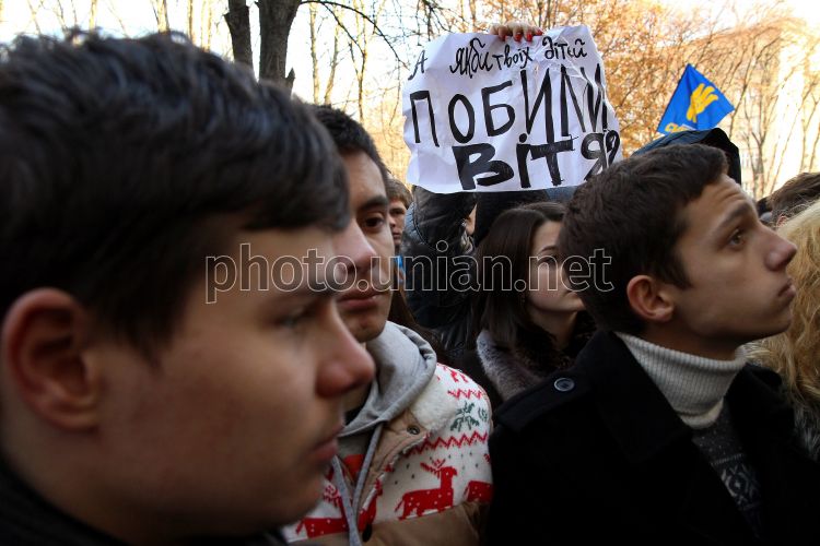 Ужгородские студенты возле здания Закарпатской ОГА в Ужгороде, в понедельник, 2 декабря 2013 г. Фото Яноша Немеша / УНИАН