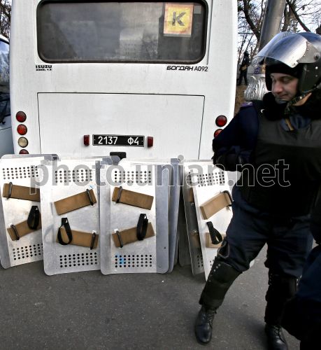 Сотрудник милиции возле здания Кабинета Министров Украины в Киеве, в среду, 4 декабря 2013 г. Фото Александра Синицы / УНИАН