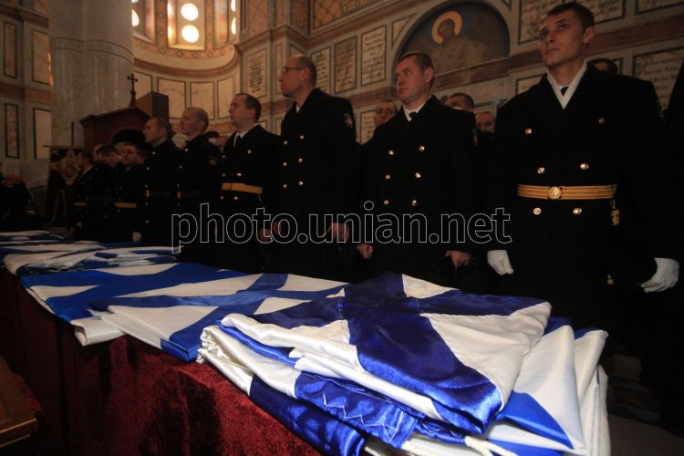 Чин освящения Андреевских флагов кораблей Черноморского флота во Владимирском соборе в Севастополе (Крым), в пятницу, 13 декабря 2013 г. Фото Алексея Сувирова / УНИАН
