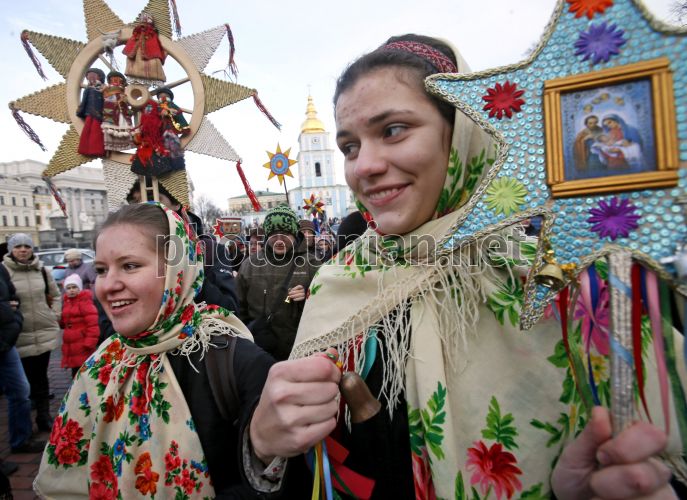 Участники парада Рождественских звезд, в Киеве, во вторник, 7 января 2014 г. Фото Александра Синицы / УНИАН