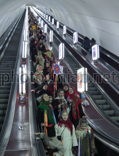 Участники парада Рождественских звезд в метро, в Киеве, во вторник, 7 января 2014 г. Фото УНИАН