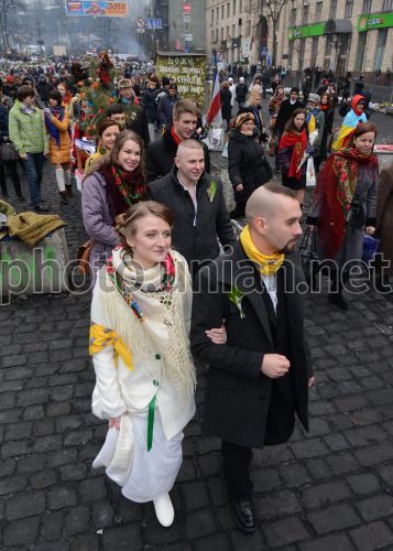 Свадьба председателя исполкома Самообороны Майдана Даниила Клеха и Кристины Крывдык, на улице Грушевского в Киеве, в субботу, 15 февраля 2014 г. Фото Владимира Токарца / УНИАН